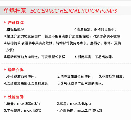 G型單螺桿泵特點: